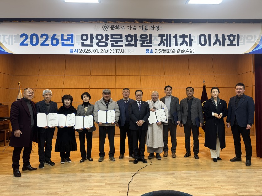 안양문화원(원장 김용곤)은 지난 28일 17시, 안양문화원 강당에서 ‘2026년 제1차 이사회’를 개최하고 2026년도 주요사업 추진 방향과 예·결산 등 핵심 안건을 심의·의결했다.